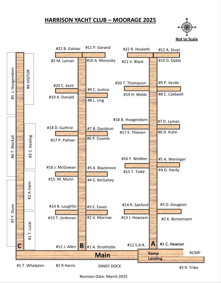 Harrison Yacht Club is a private moorage. Members of yacht clubs that have reciprocal privileges may request moorage at the HYC. Approval & assignment of such shall be by the HYC Fleet Captain or an authorized member of the HYC Bridge. All reciprocal visitor moorage will be on a first come, first serve basis.